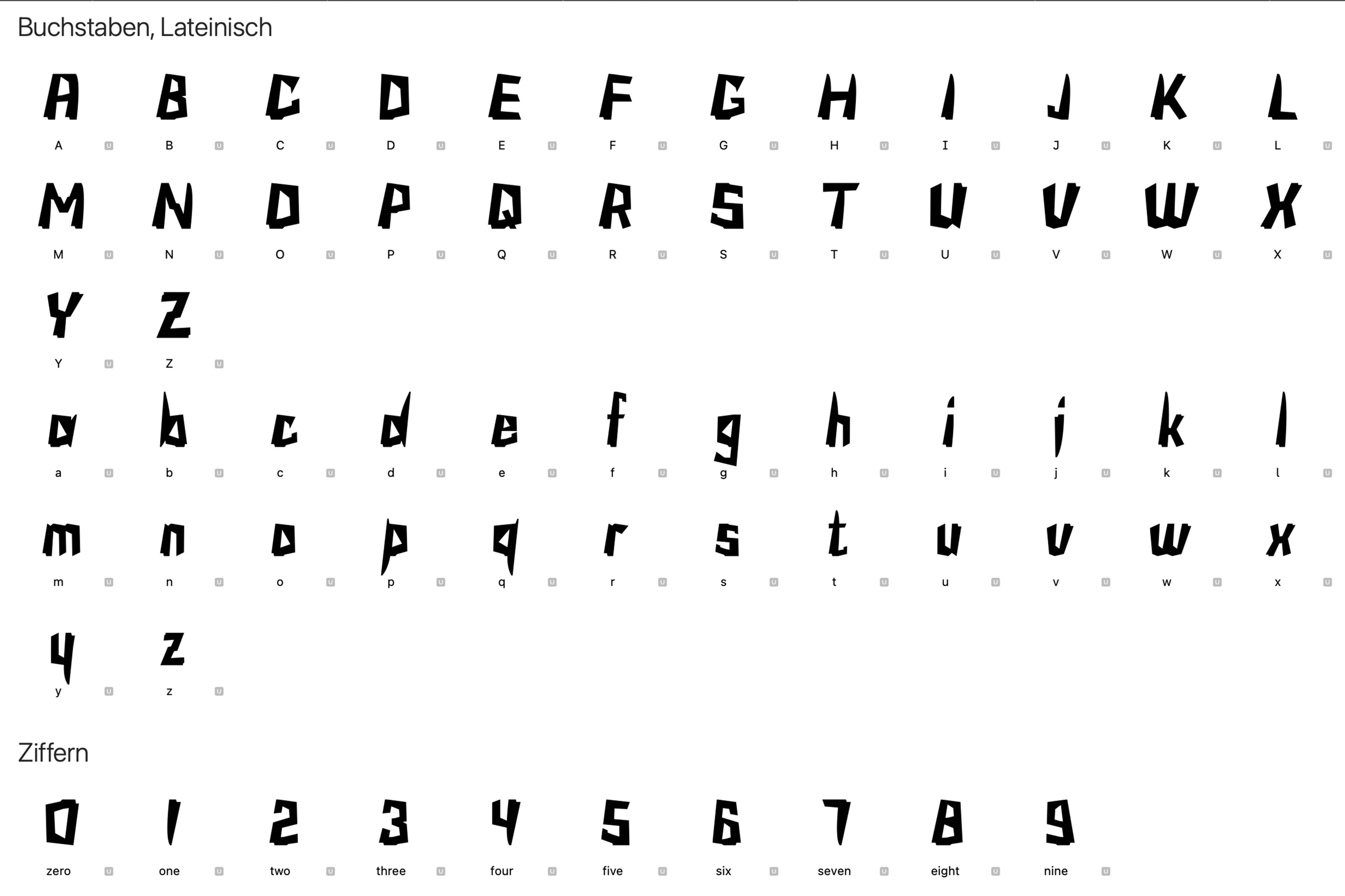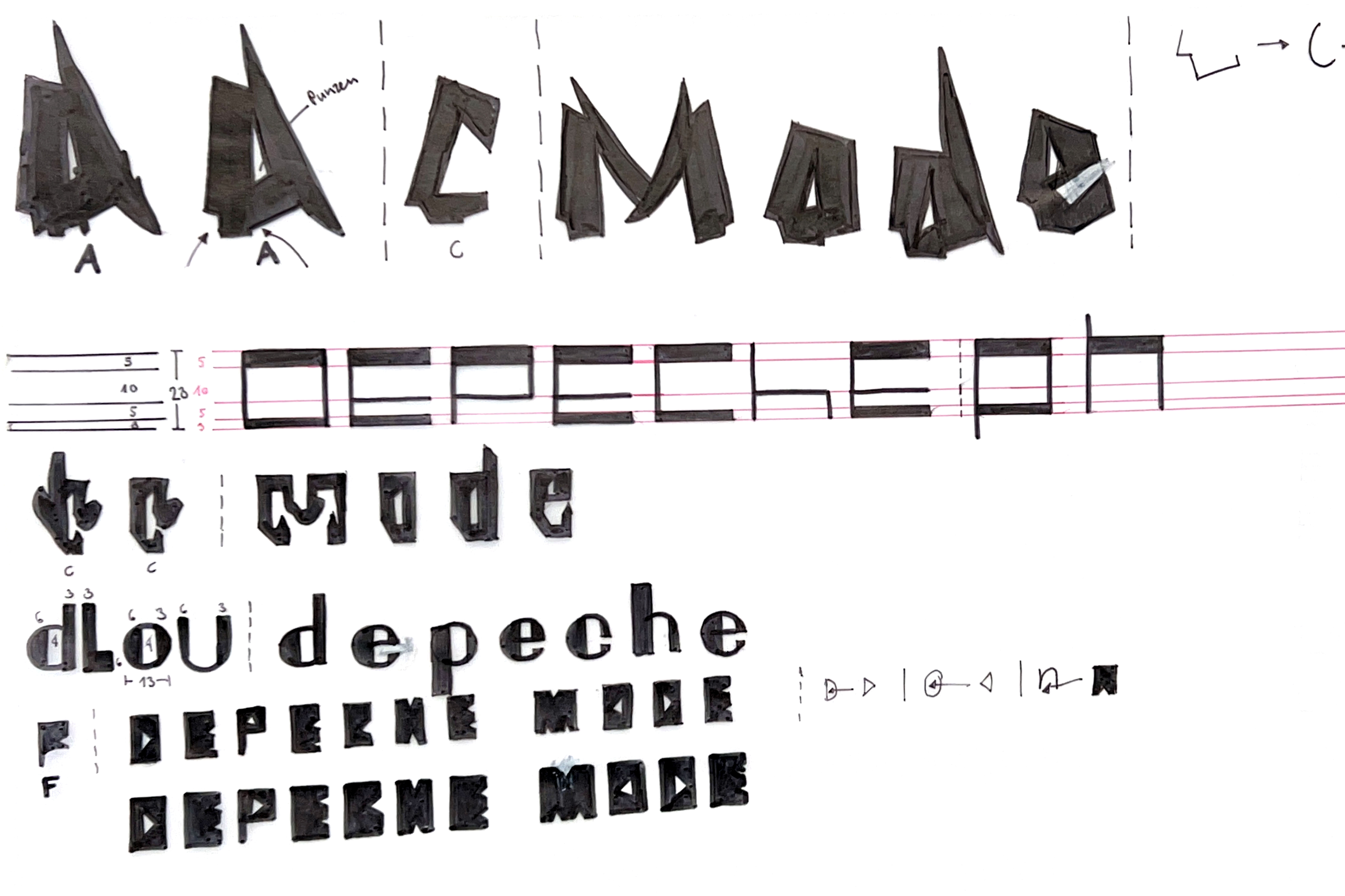 The visual inventories of a cassette led, through deconstruction, to the design of a typeface inspired by the music of a synth-pop rock band. It is suitable for striking, poster-like applications and was originally created for an album cover. The typeface is characterised by bold, angular, and high-contrast shapes.