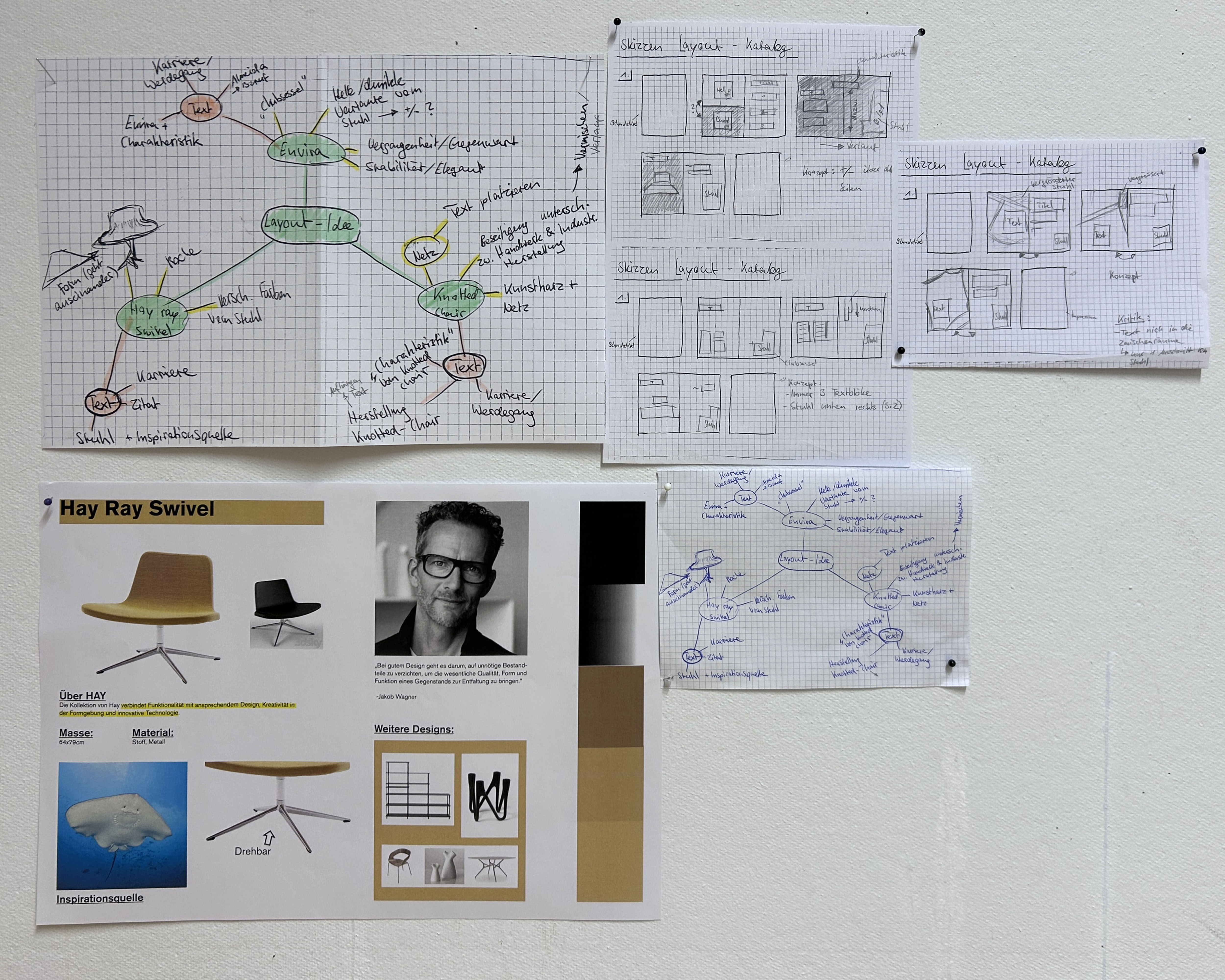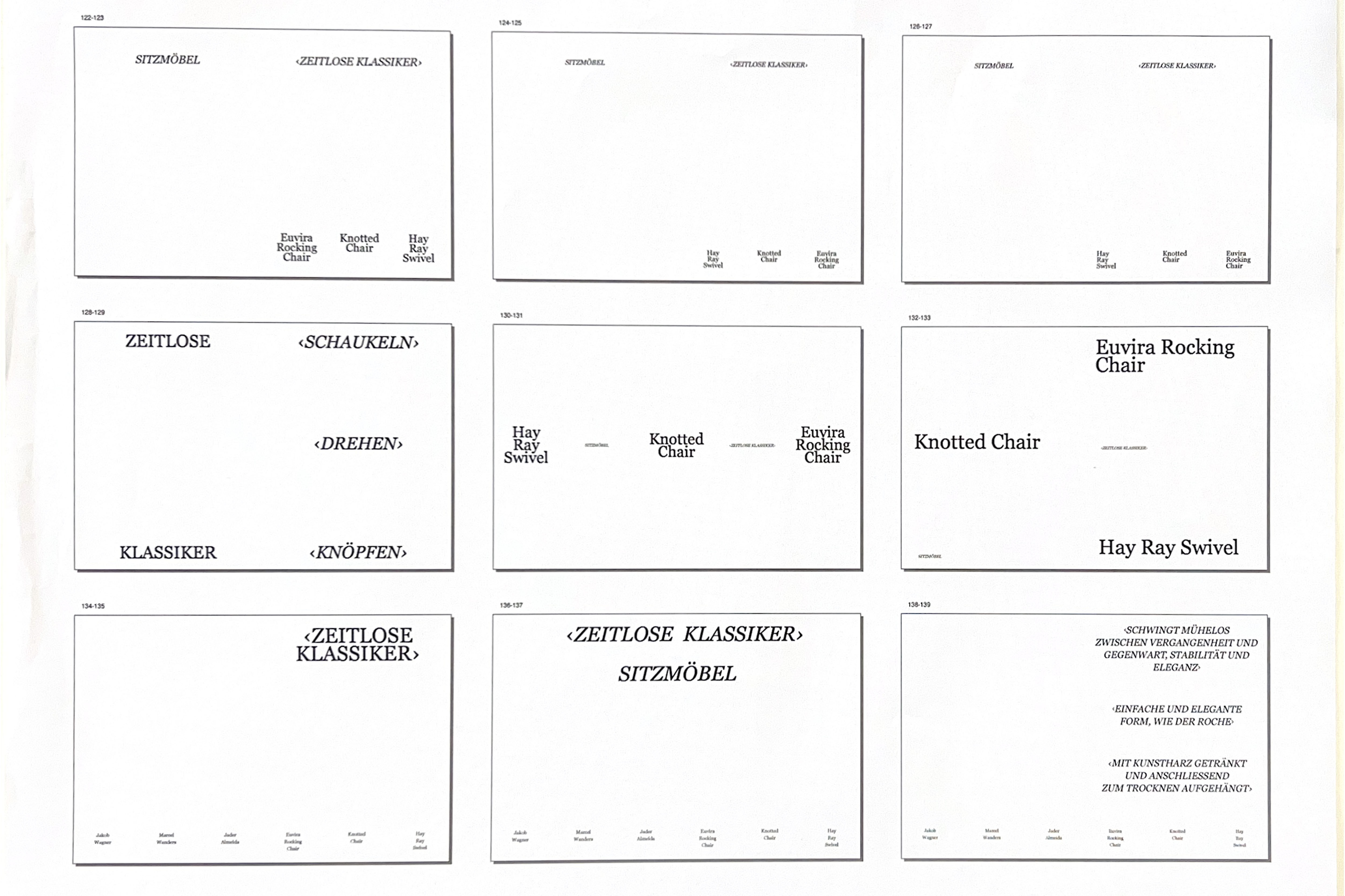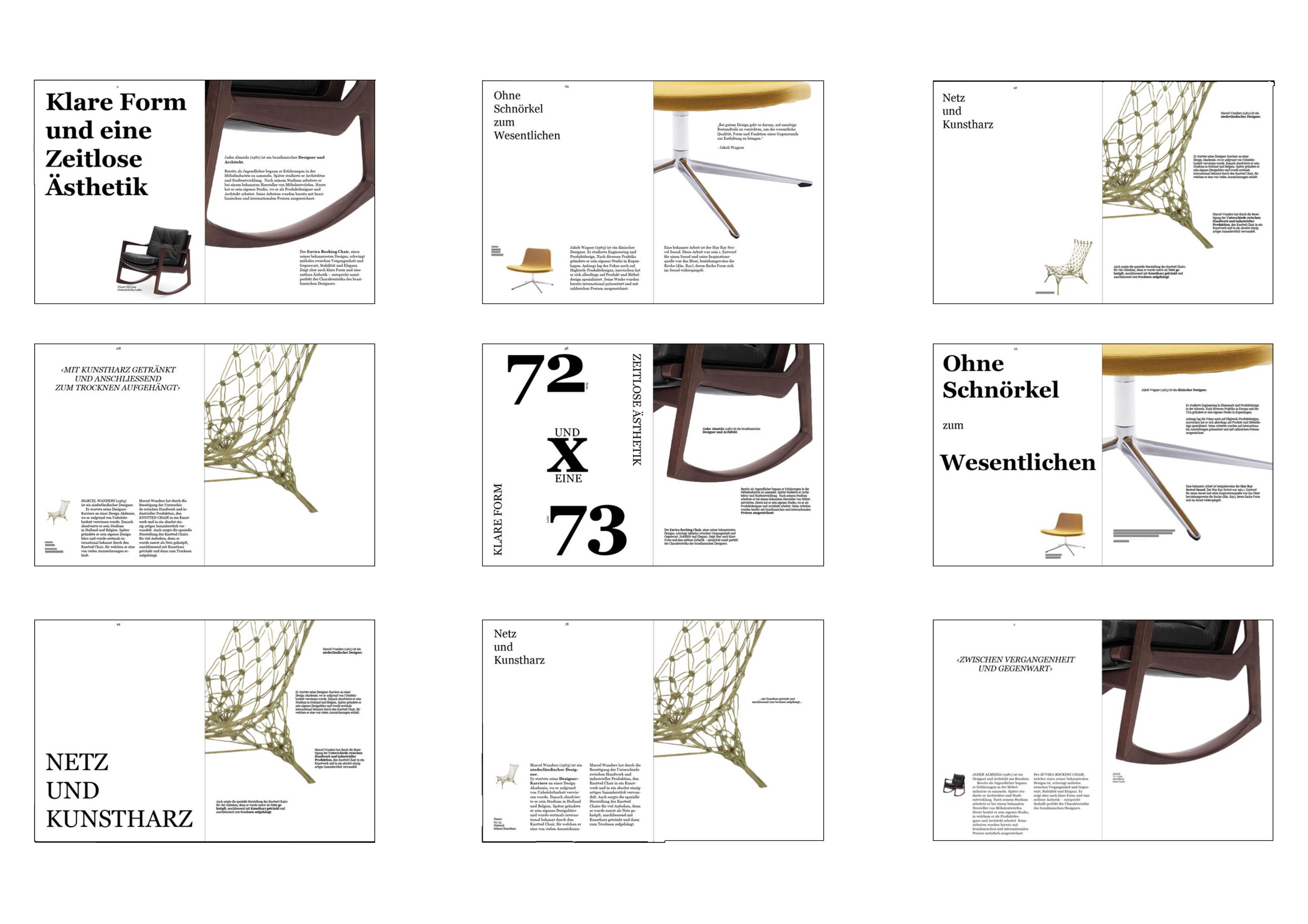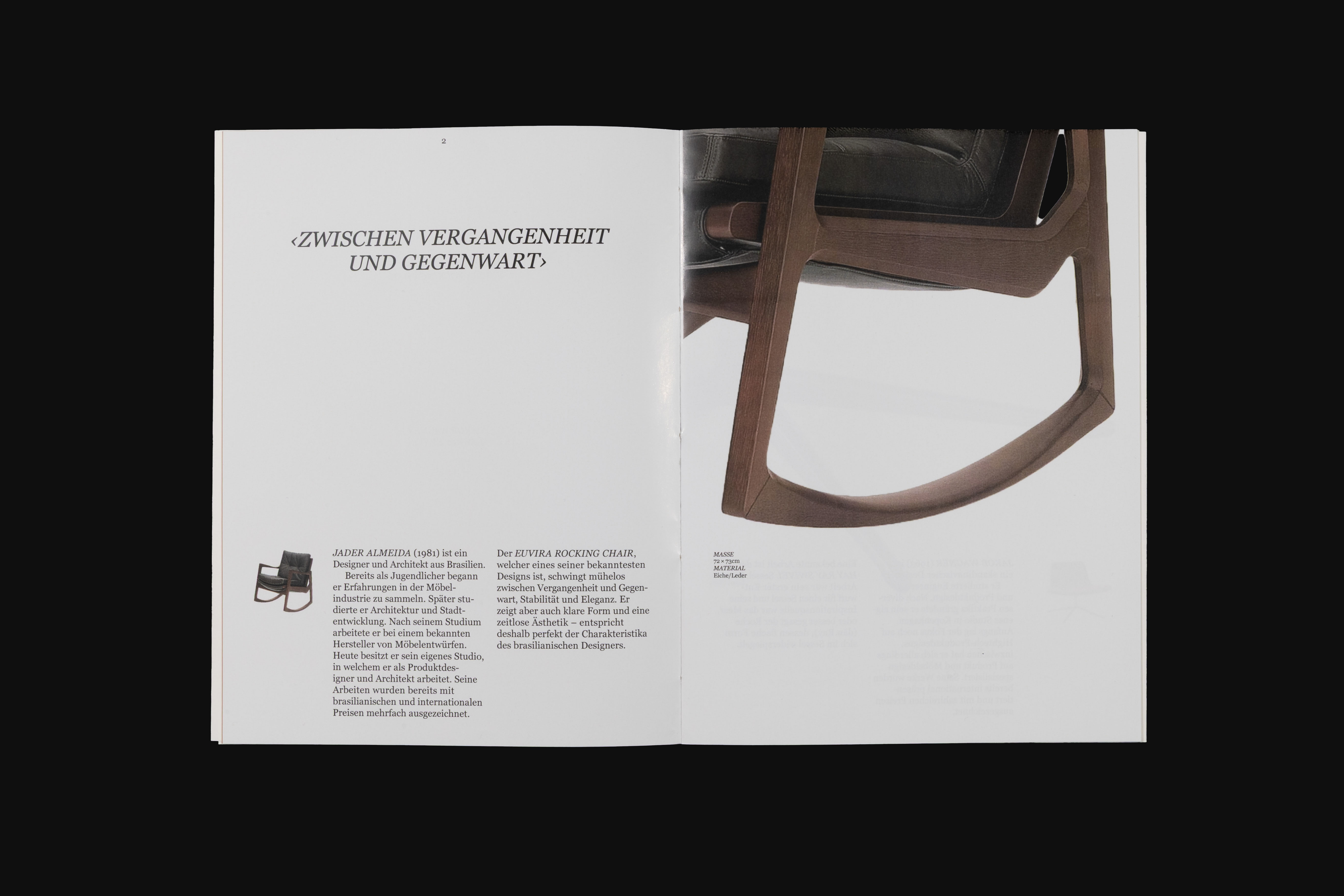 This project presents designer chairs and their creators through an editorial layout. In addition to information about the products, the biographies of the respective designers are also explored. Each of these designer chairs possesses a distinctive feature – whether it is the name, the method of production, or the spirit of its time. The aim is to provide insight into the catalogue’s content through these characteristics. The project stands out by displaying these elegant pieces of furniture in a magazine-style layout while presenting them in an especially high-quality manner.